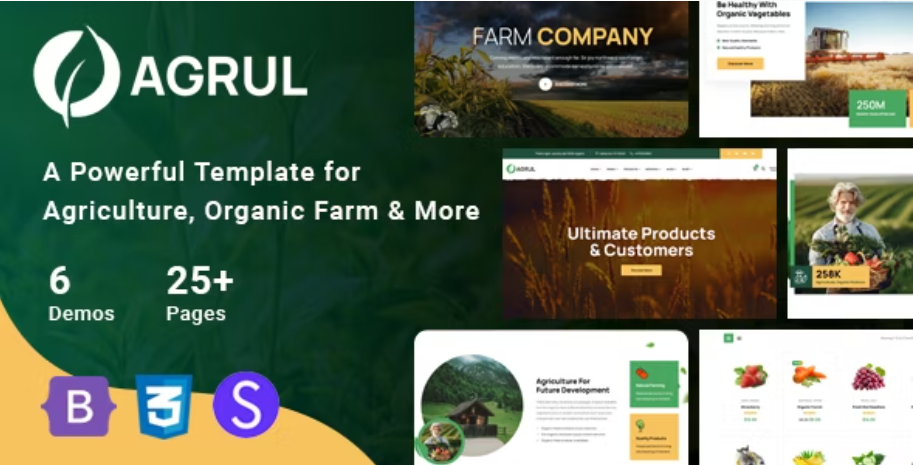 Agrul is a Responsive quick and easy customizable Modern Multipurpose Organic Farm Agriculture Template that comes with 25+ valid HTML5 pages and 6 home page variations. Agrul offers numerous awesome features like , Organic Food, Agriculture, Farming, Livestock, Organic Agriculture, Farmer, Plant Biotechnology, Precision Farming, Tillage, Poultry, Gardening, Landscaping Services, Farming, Agricultural Industries or your just a Blog This is highly customizable – looks awesome on tablets and mobile devices. Well commented code, well-documented file structure and 24/7 professional and ultra-fast Support.